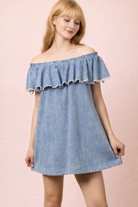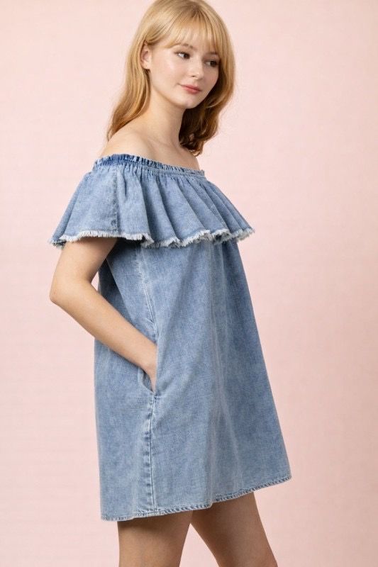 Chambray Ruffle Dress
