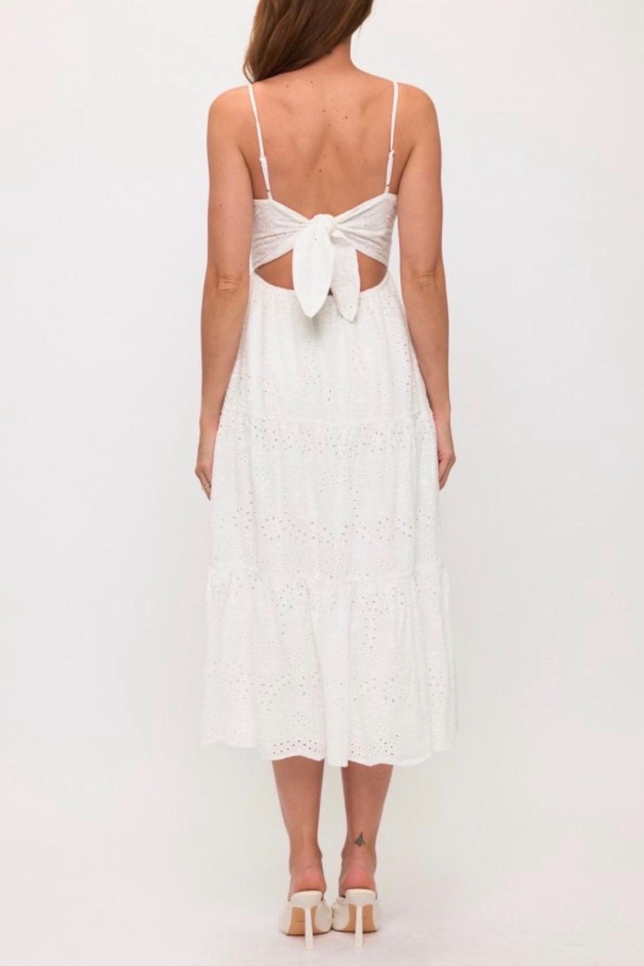 Cotton Eyelet Tie Back Midi Dress