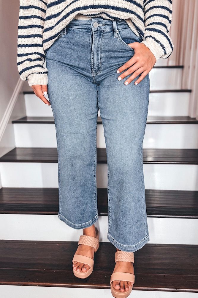 Cropped Slim Wide Leg Sweatless Jeans Medium