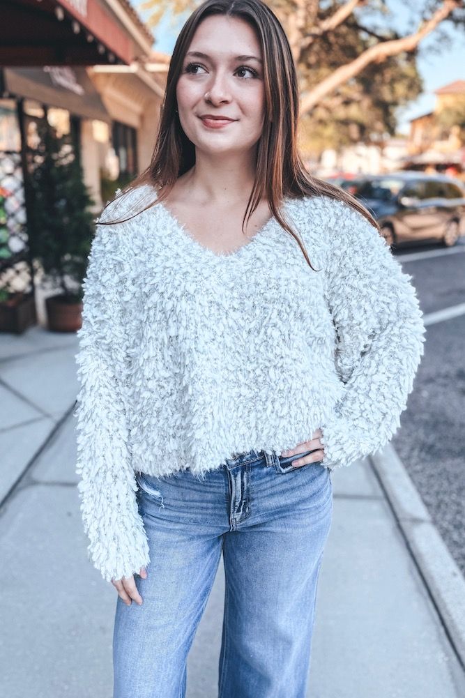 Fuzzy V-Neck Sweater