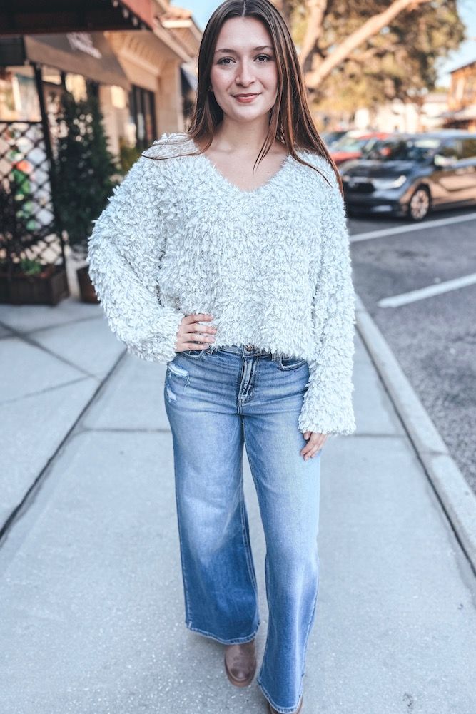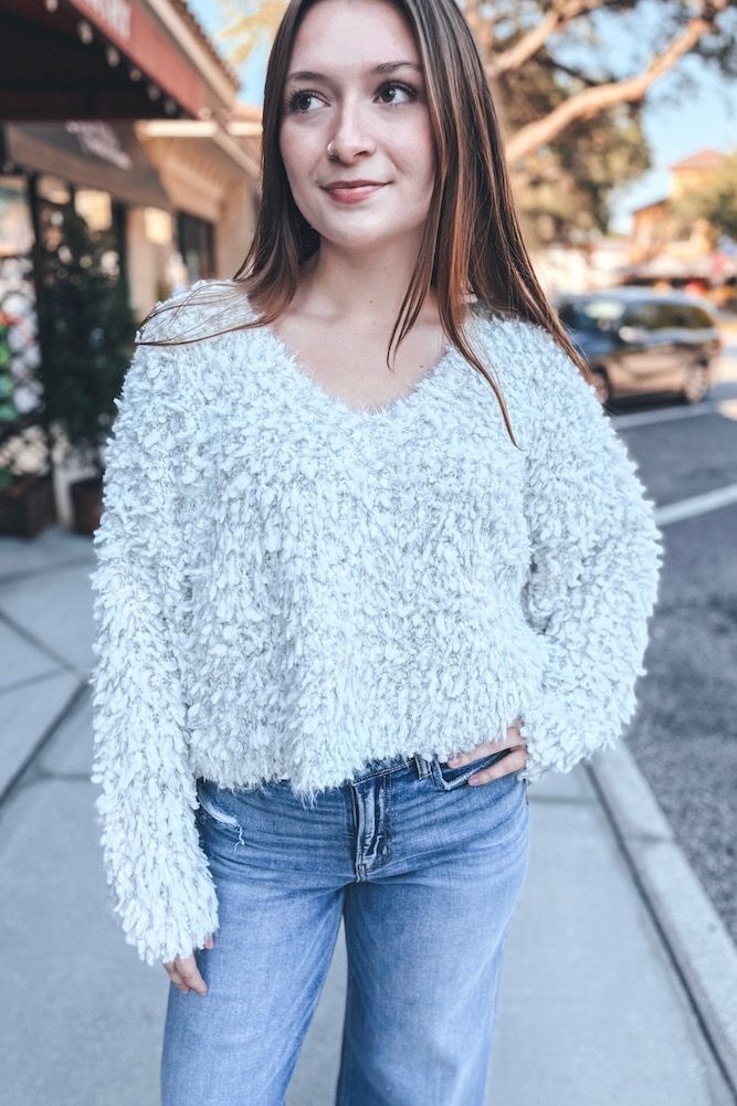 Fuzzy V-Neck Sweater