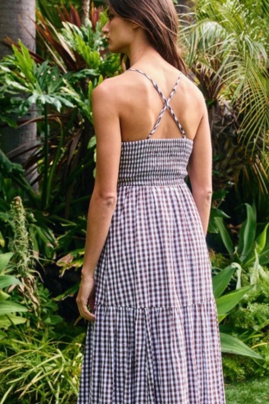 Gingham Halter Maxi Dress Brown