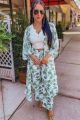 Print Open Cardigan Green