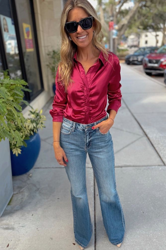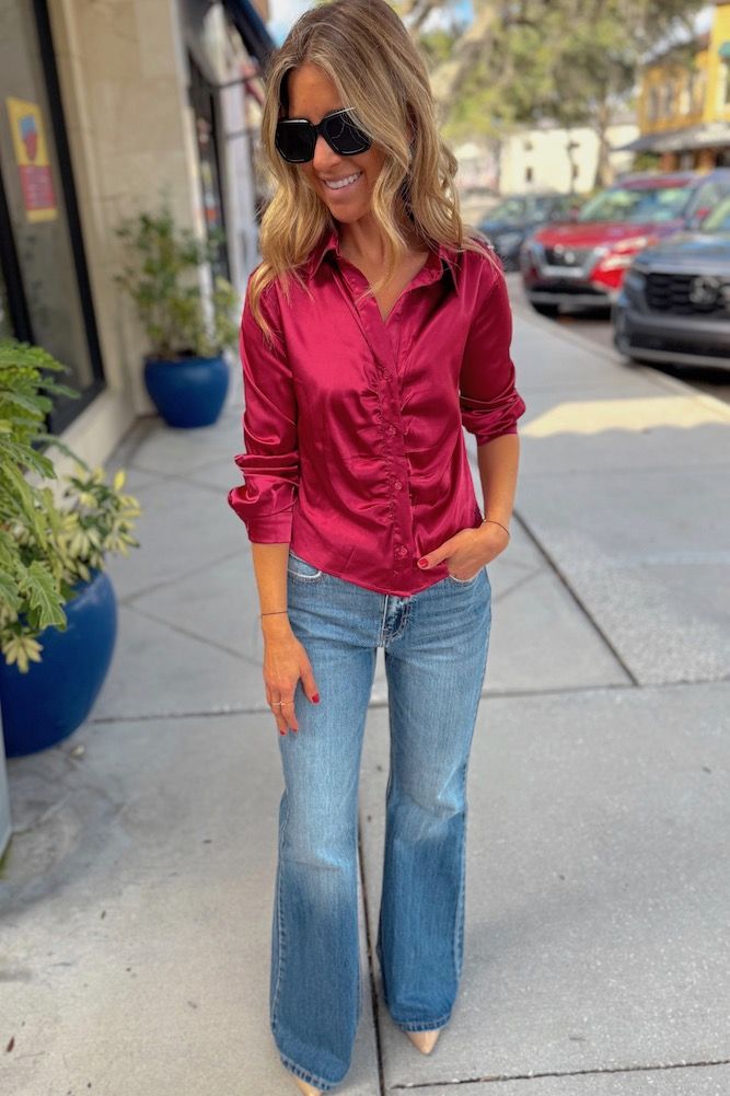 Satin Button Down Blouse