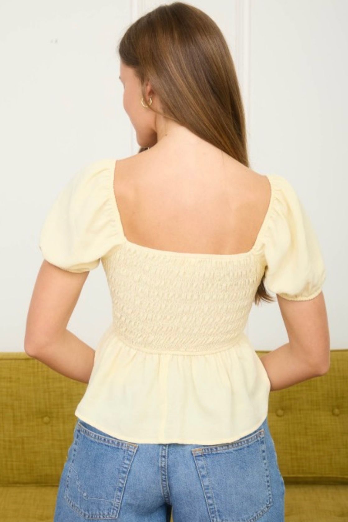 Smocked Bow Detail Blouse Yellow