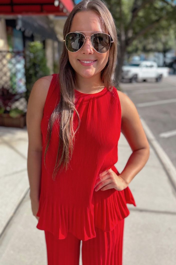 6. Pleated Tank Red
