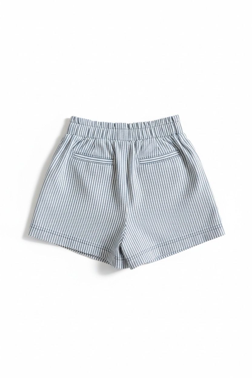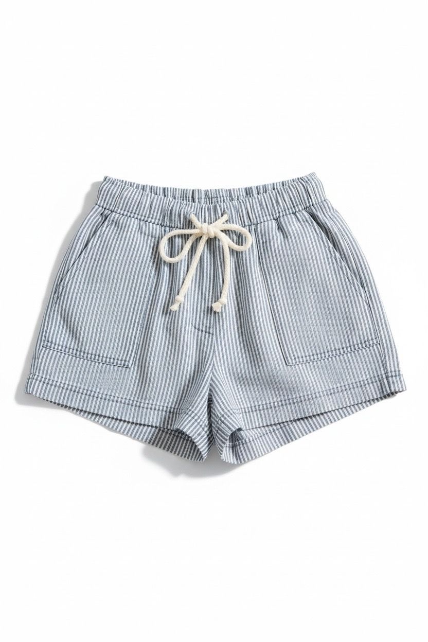 Washed Striped Denim Shorts